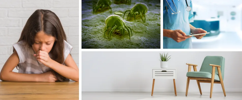 ❏ Préférez les matières synthétiques lavables à haute température et les sommiers à lattes pour votre literie. Pensez à visiter le dessous des armoires et des lits avec votre aspirateur. (Parenthèse doudou : arrangez-vous pour le laver aussi souvent que possible !).